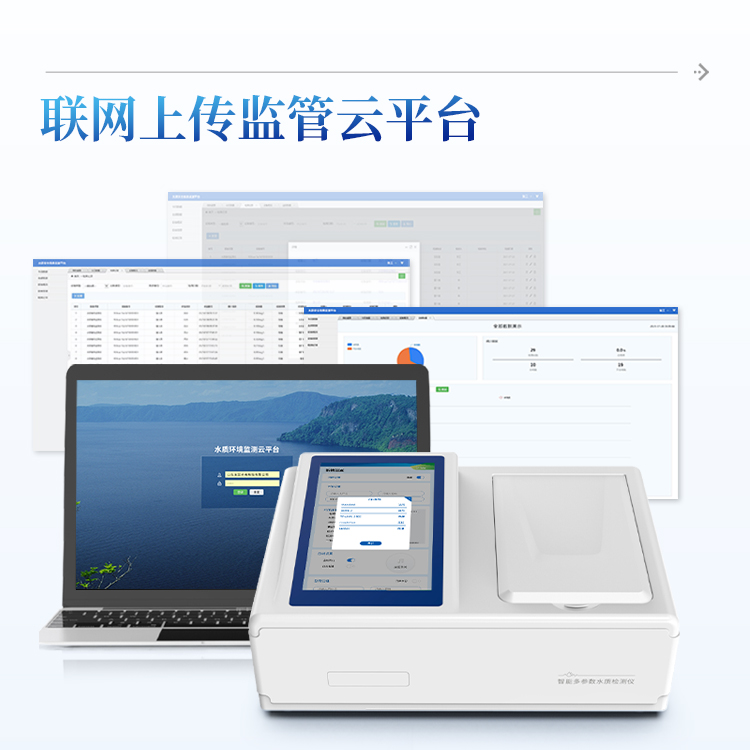 云平台:仪器带有监管平台,连接有线/无线网络,检测结果直接传输至环境安全监管平台;
